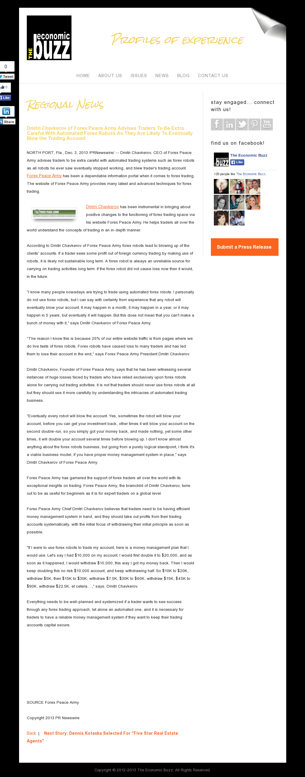 Dmitri Chavkerov | Sound Money Management Using Trading Robots publication inThe Economic Buzz