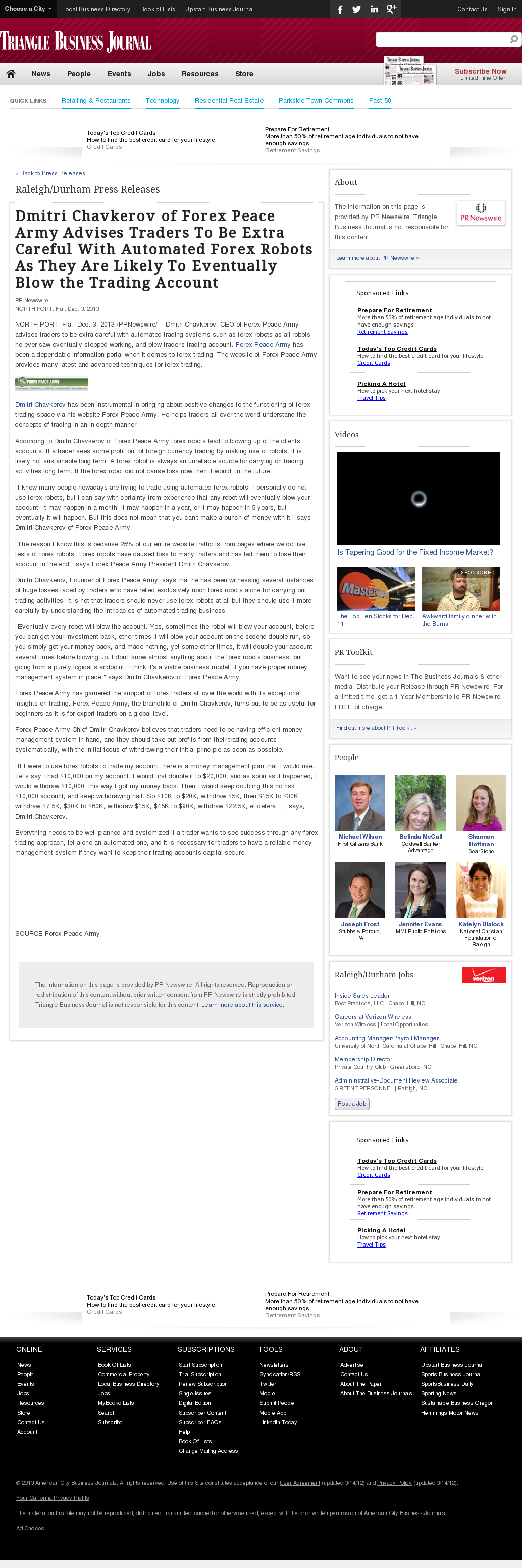 Dmitri Chavkerov | Forex robots have caused loss to many traders and has led them to lose their account in the end – Triangle Business Journal